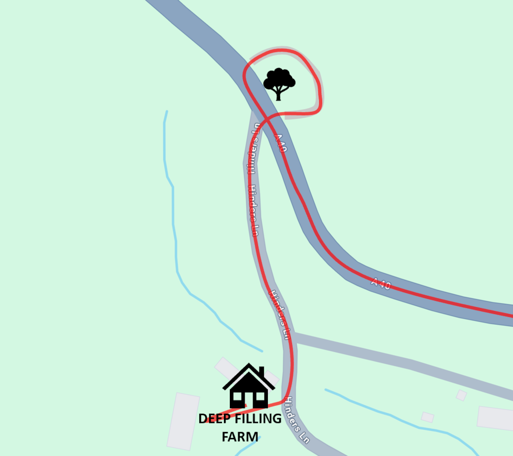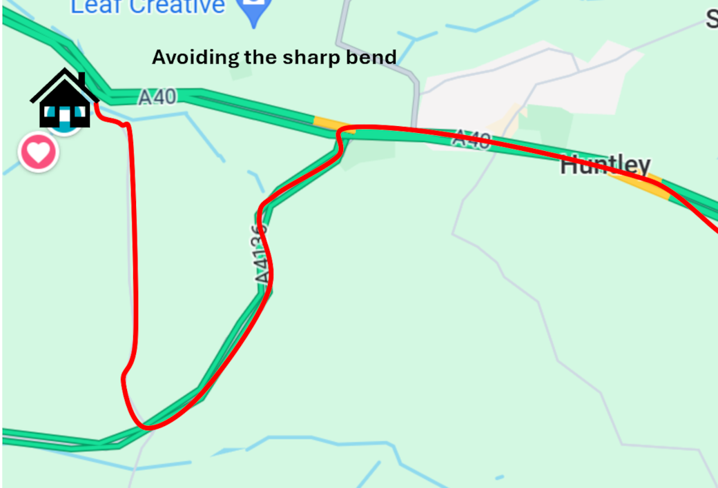 From the A40 from Gloucester, the easiest route is to go left at the traffic lights before the Morrisons garage and then via the A4136 and along Hinders Lane. Alternatively, you can turn right on the A40 and use the turning area opposite the tight turning so that you can make the turning. We recommend you take the easier route until you are confident about the local area.